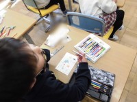 1年生の生活科では、外国に住むお友達に送るクリスマスカードを作っていました。 ...