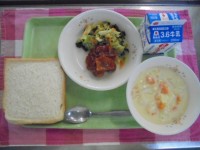 ~今日の献立~2月17日(火)*黒糖入り角型食パン*牛乳*かぼちゃグラタン*肉団...