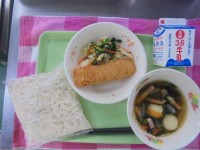 1月13日(火)~今日の献立~*ちからうどん*牛乳*太刀魚フライ*キャベツのごまこんぶ和え1月14日(水)~今日の献立~*麦ごはん*牛乳*チキンカツカレー*三色ソテー