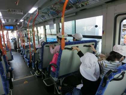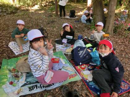 自然の中で食べるお弁当は格別です。バスに乗って帰ってきました。20人で楽しく学んできました。