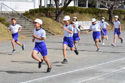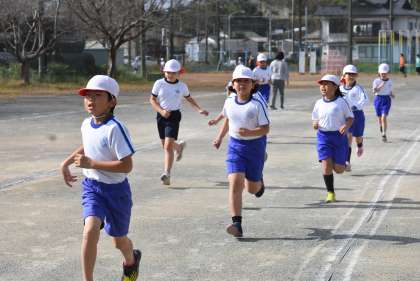 毎日中休みに行っているかけ足運動にも慣れてきて、グランドに出て、どんどん準備運動が始まります。