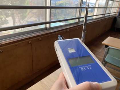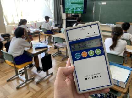 教室の明るさ、空気の流れ、二酸化炭素の濃さを