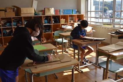 中休みのかけ足運動の時間は、小雨が降っていました。学級で自由な時間になりました。6年生は、下級生を招待してのクリスマスパーティの準備をしていました。