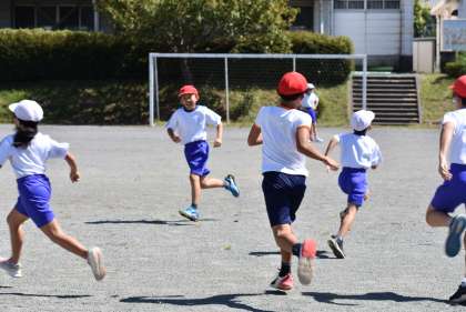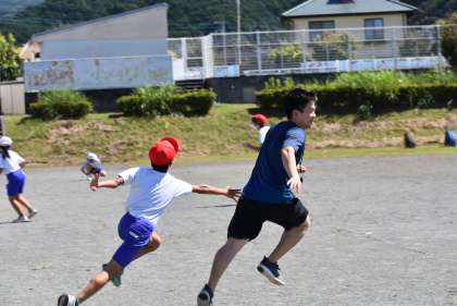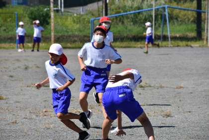 途中で5年生男子も赤い帽子に変わり、鬼になりました。