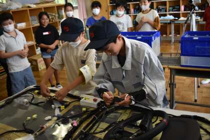 子供たちの代表が、実際の作業工程を体験させていただきました。