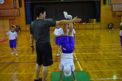 今日は足をあげる練習です。誰かに補助してもらっても、壁倒立でもOKです。