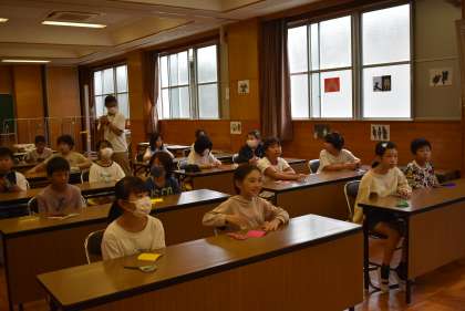 今日は、紙切り作家の水口千令先生に来校していただき、全校児童が切り絵講座を行いました。素敵な作品に歓声があがり、自分の作品も夢中になって作りました。