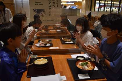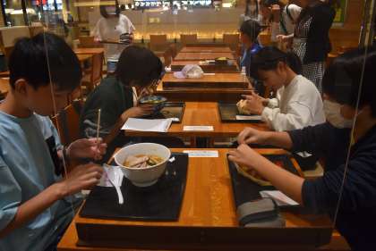 スカイツリーに来て、フードコートでお昼です。