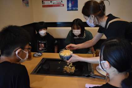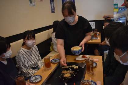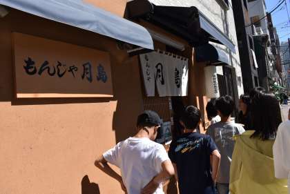 昼食は月島でもんじゃ焼きです。