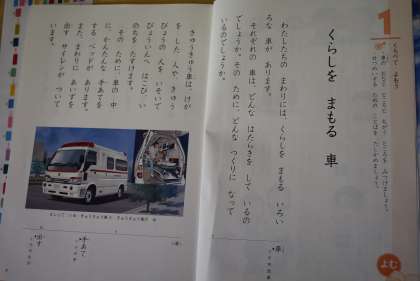 「くらしをまもる車」教科書を読んでいきます。