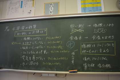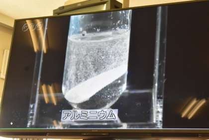 塩酸にアルミニウムを入れました。反応が起きていますね。