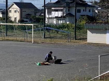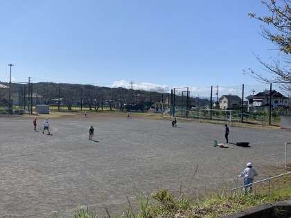 運動場では、男の子たちが元気に遊んでいます。