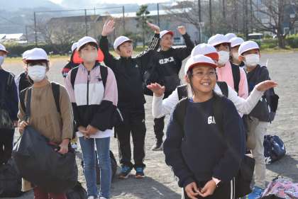 5年生が自然教室に出かけます。お天気でよかったですね。