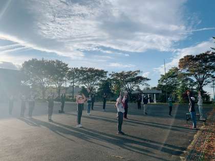 みんなでラジオ体操をしました。