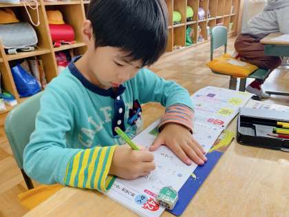 一生懸命ドリルをすすめています。