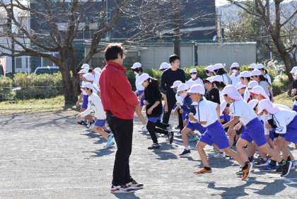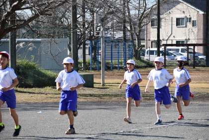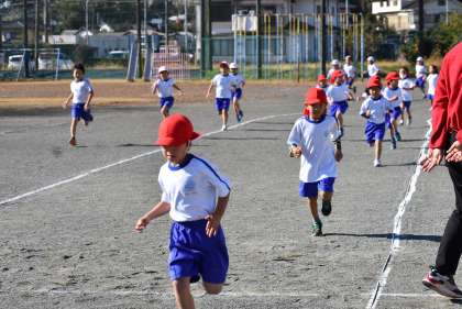 今日は、運動日課です。まだランニングフェスティバルを終えていない2年生のために、全校で走りました。