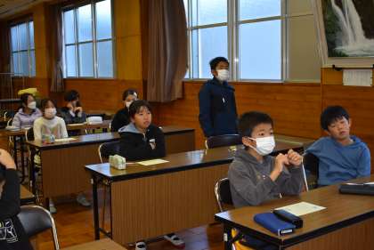 校長が授業をしました。教材は4年生の「泣いた赤おに」です。