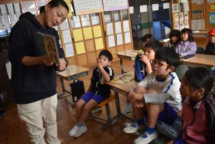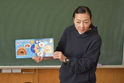 授業の始まりは、いつも担当の先生が、読み聞かせをしています。