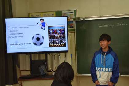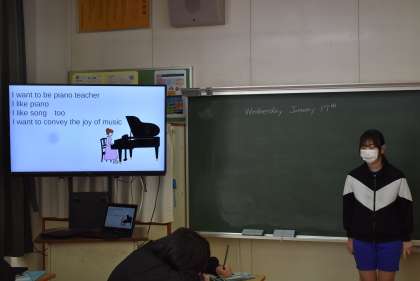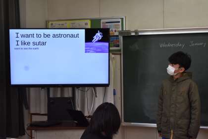 今日は、プレゼンです。自分のなりたいものを説明しています。