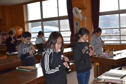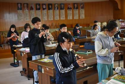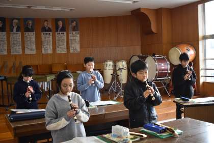 リコーダーの練習を、先生が来る前から、どんどん始める5年生です。