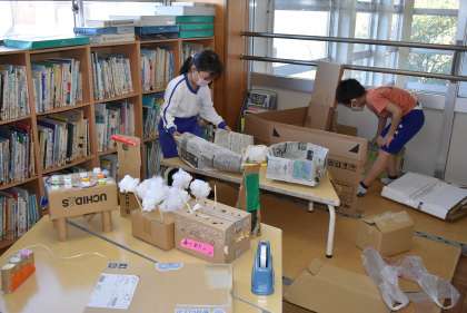 国語で「やってごらん おもしろいよ」という単元を学習しました。それと結び付けて、「おまつり」の準備をしています。1年生や保護者の皆さんがお客さんだそうです。楽しみですね。