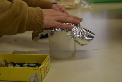 空気の温まり方の実験をします。