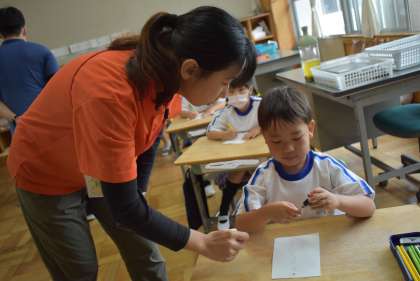 鉛筆で大きく名前を書き、先生に合格をもらったら、ペン書きをします。