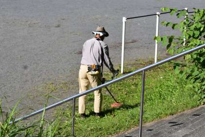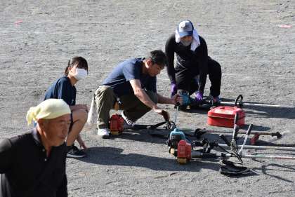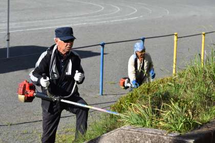1週間後に最後の運動会を控え、今日は地域の草刈ボランティア活動と親子奉仕活動の日です。早朝よりありがとうございます。