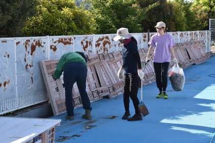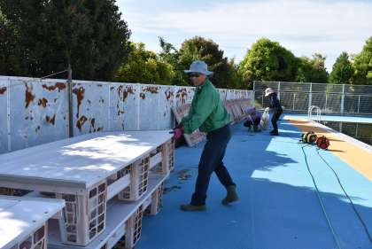 プールの中は、業者清掃にしますが、プールサイドや水深調整台は、お掃除をしていだきました。