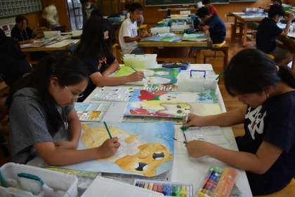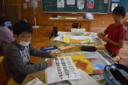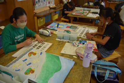 目に留まるポスターにするために、コピーを付けて完成です。みんな真剣にコピーを考えています。
