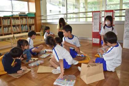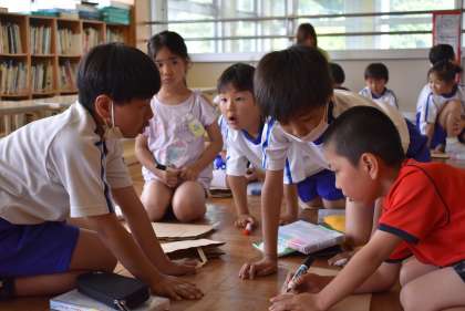 赤組、白組に分かれて、3年生が教えながら作っていきます。