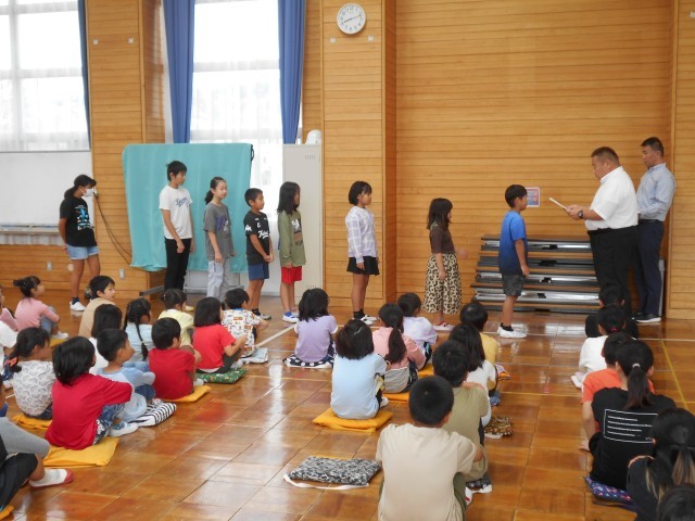 校長先生から、後期の学級委員と児童会役員に任命書を渡しました。