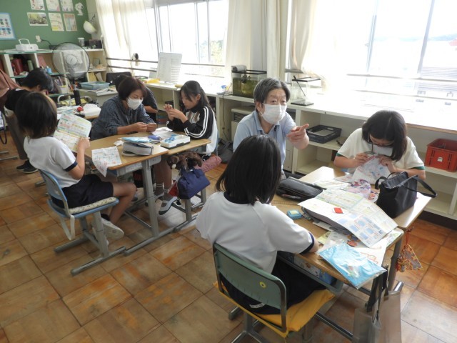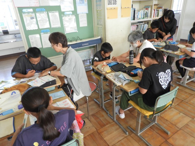 5年生の家庭科の授業では、地域のボランティアの方に来校いただき、手縫いの仕方について教えていただきました。