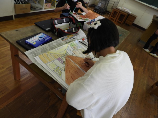 6年生は、「わたしの大切な風景」と題して、水彩画に取り組んでいます。教室や運動場など、学校の中で思い出の場所を描き表しています。