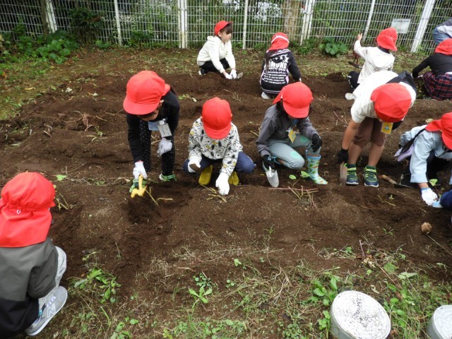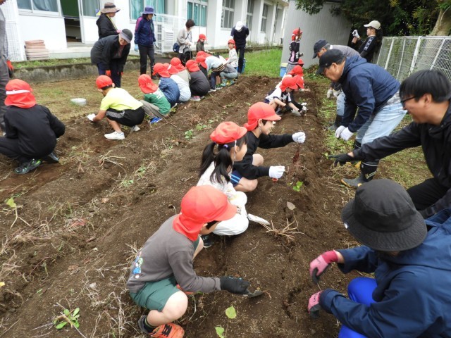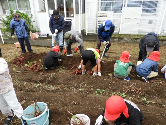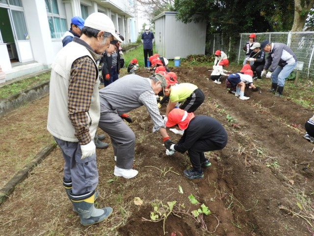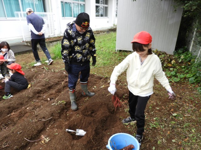 1.2年生は、地域のボランティアの方とさつまいも掘りをしました。大きなさつまいもがたくさんとれ、歓声が上がっていました。