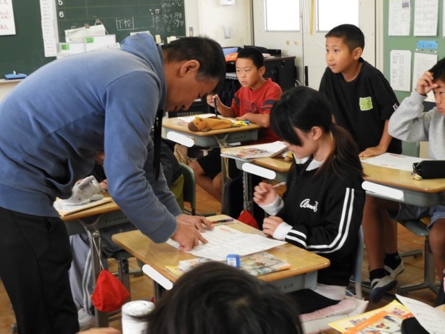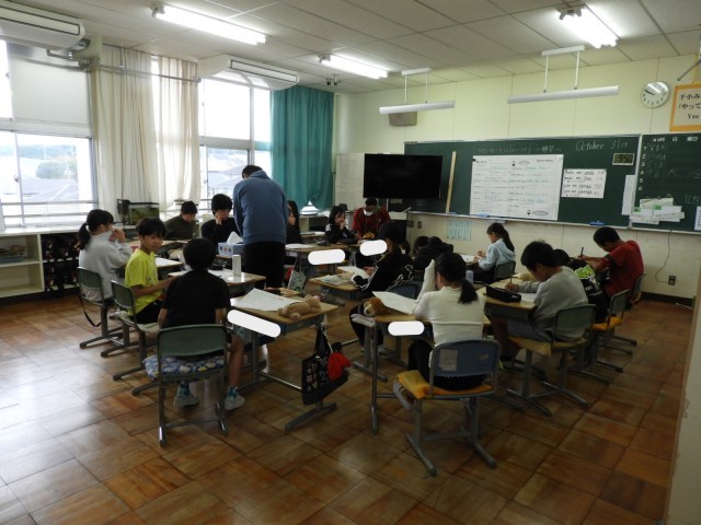 5年生は外国語の授業で「Myヒーロー」と題して発表原稿づくりをしました。
