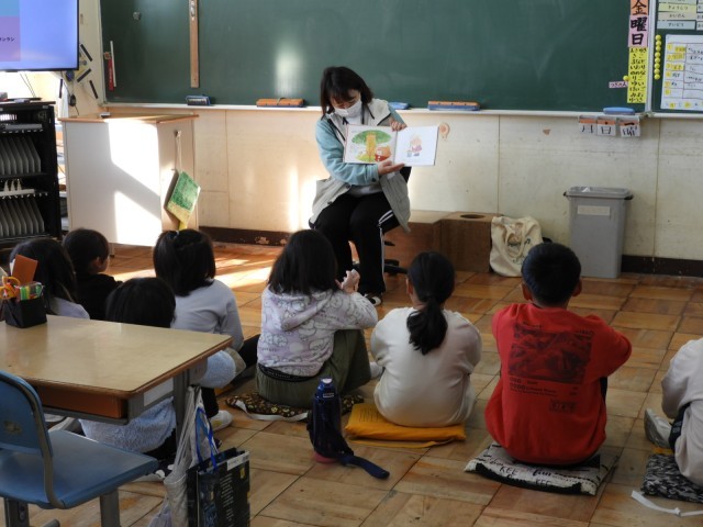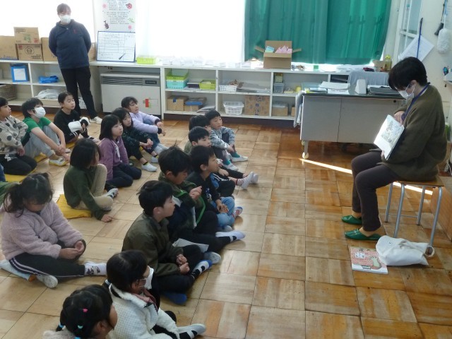 今日は読み聞かせの日です。読み聞かせボランティアの方や担任による読み聞かせを行いました。子どもたちは真剣に聞き入っていました。