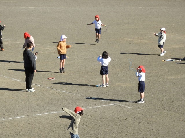 暖か日差しの中1・2年生は、運動場で縄跳び遊びやボール遊びを楽しみました。