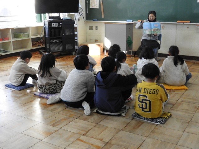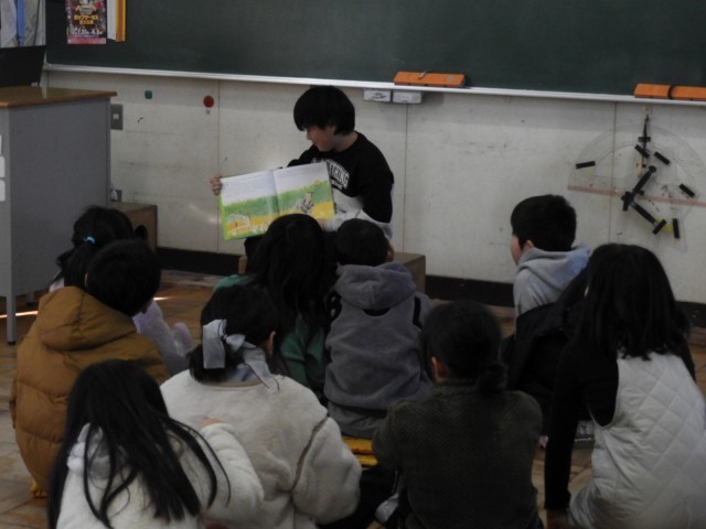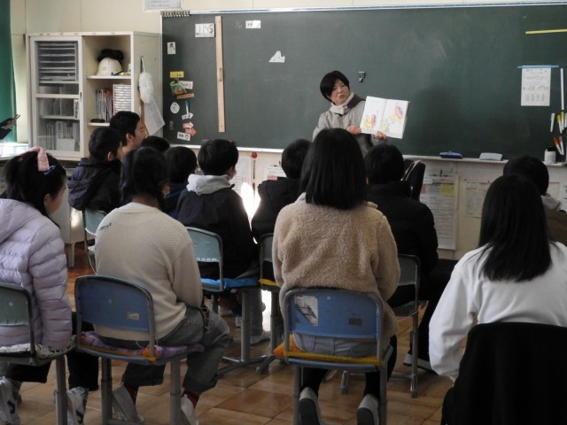 今日は読み聞かせの日です。読み聞かせボランティアの方や担任、児童による読み聞かせが行われました。皆、話に引き込まれていました。