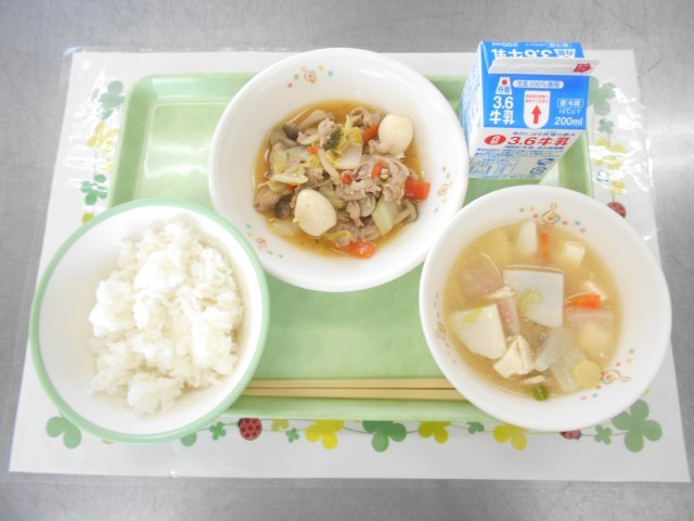 ごはん 牛乳 豚肉と白菜のうま煮 さつま汁