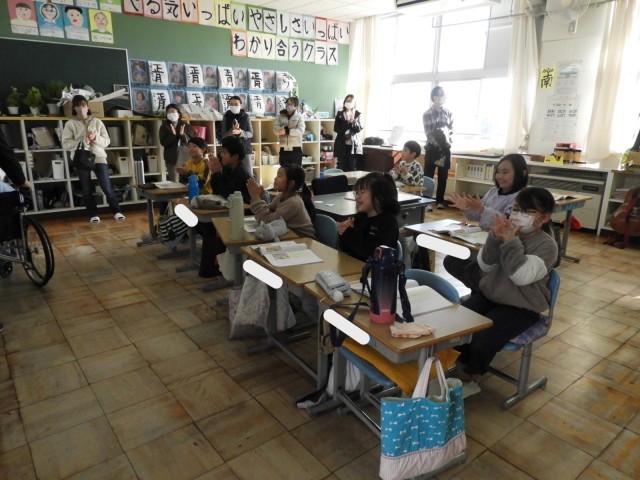 今日は、1.2.3年生の授業参観日です。たくさんの保護者の方が参観に来られました。3年生の道徳では、手伝う心について考えました。実際に車いすの体験をすることで、考える視点を増やしました。
