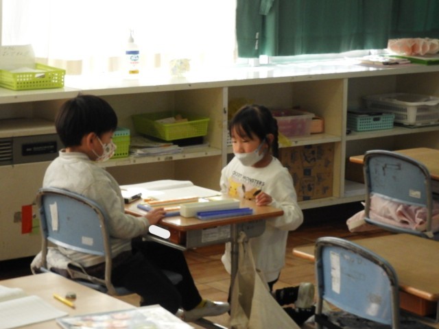 1年生は、2桁+1桁のたし算のやり方について考えました。全員で考えを聴き合ったり、ペアで相談したりしました。