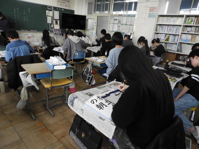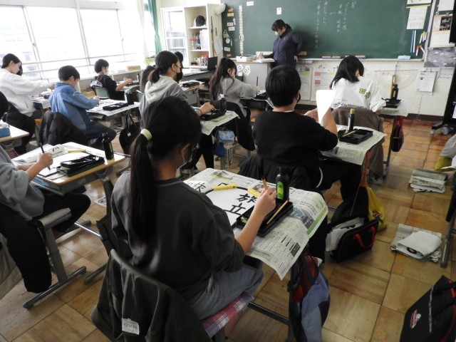 6年生の書写では、「旅立ちの朝」を書きました。バランスよく5文字を書くことに苦戦しながらも、丁寧に取り組んでいました。