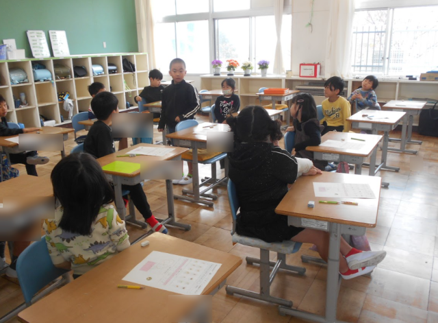 2年生の算数の学習では、表を見ながら、気付いたことの意見を出し合っていました。