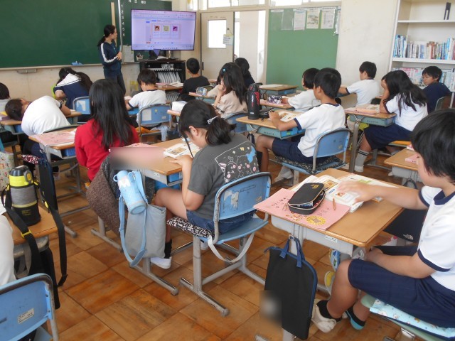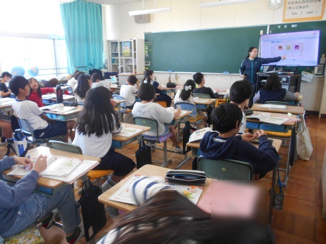 5年生の外国語の授業では、『名前のつづり方をたずねあおう』の学習をしていました。