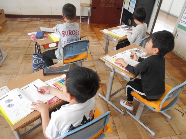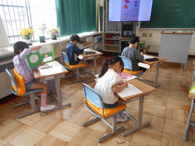 1年生は、算数で数字の学習をしました。ノートに数字を書いたり絵でその数を表したりするなど、理解をしました。
