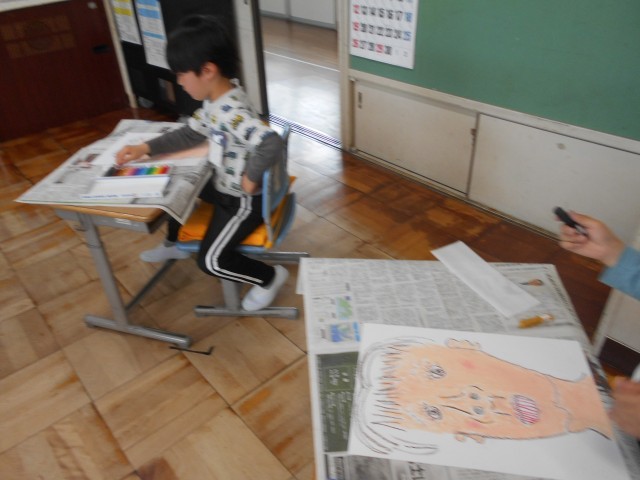 1年生の図工では、自分の顔を描いていました。