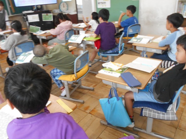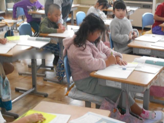 2年生の算数は、たしざんの筆算に挑戦していました。