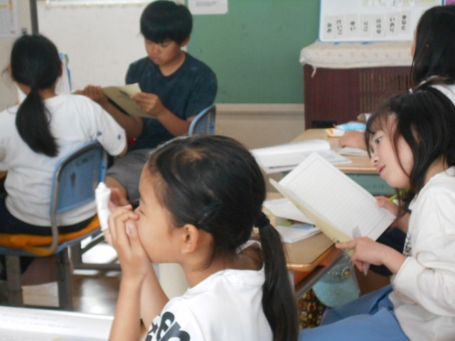 自分の考えをノートに書きこみ、それを友達と共有していました。