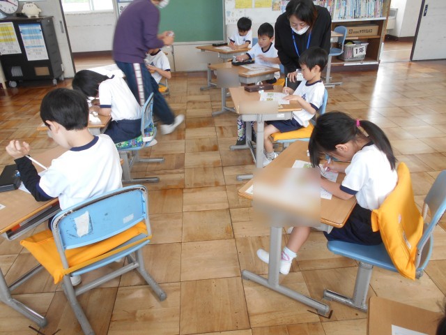 お手本を見ながら、形を一生懸命整えて書こうとする一年生が素敵でした!